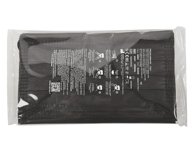 Premium mascherina chirurgica filtrante 98% 3 veli tipo ii con elastici - adulti - nera - conf. 50 pz.
