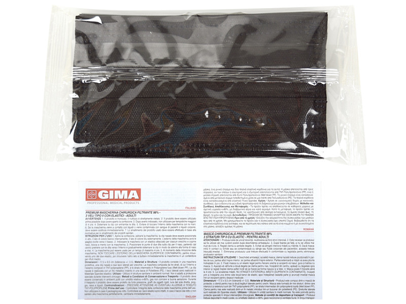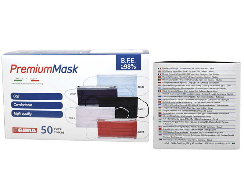 PREMIUM MASCHERINE FILTRANTI 98% 3 VELI - TIPO II CON ELASTICI- Mascherine a 3 veli