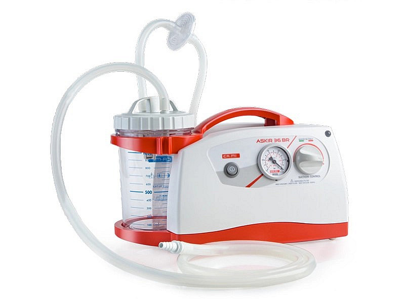 NEW ASKIR 36BR a batterie - RE410201 con vaso 1 litro FLOVAC è un aspiratore chirurgico portatile prodotto da CA-MI, progettato per l'aspirazione orale, nasale e tracheale di liquidi corporei in pazienti adulti e pediatrici. Ideale per l'utilizzo in ambito domiciliare, ambulatoriale o durante il trasporto, garantisce prestazioni elevate e sicurezza d'uso anche in situazioni di emergenza.