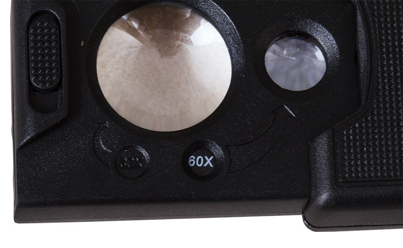 La lente ha due tipi di illuminazione integrati: LED e ultravioletta. La luce LED consente di illuminare uniformemente gli oggetti osservati e la luce ultravioletta aiuta a vedere la filigrana sulle banconote. Le lampadine sono posizionate lungo il telaio della lente e si accendono con un apposito pulsante.