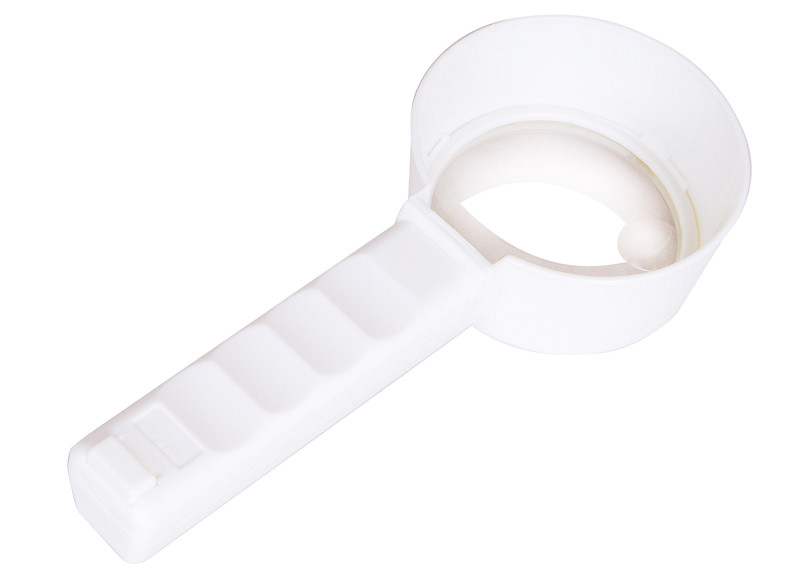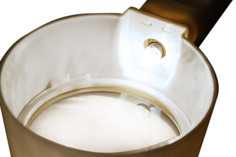 Il dispositivo d’ingrandimento visivo è dotato di lenti bifocali. La lente è realizzata in vetro polimero ottico l’immagine visualizzata è nitida e dettagliata. Non sono presenti aberrazioni o punti sfocati. Il telaio e l’impugnatura sono realizzati in plastica. La lente d’ingrandimento è dotata di luce con interruttore sull’impugnatura. La luce è alimentata a batterie (da acquistare separatamente).