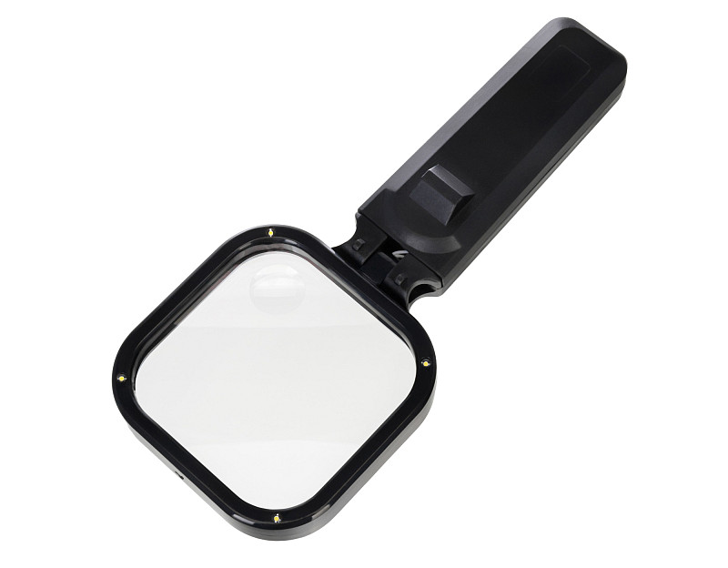 Tutti gli elementi ottici di questa lente sono realizzati in vetro polimero ottico. E una lente leggerissima da tenere in mano. L’immagine offerta dall’ottica è nitida, senza sfocature o aberrazioni. La lente ha angolo di inclinazione variabile. È presente una luce LED proprio a fianco della lente. La luminosità è regolabile grazie a un in interruttore sul corpo della lente. Sono necessarie delle batterie (non incluse) per l’alimentazione della luce.