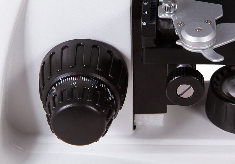 Gli oculari e le lenti dell'obiettivo sono realizzati in vetro ottico con rivestimento antifungino. Gli oculari forniscono un ingrandimento di 10x e una buona visuale che consente di lavorare con campioni estesi Le lenti obiettivo acromatiche sono installate nel microscopio. L’ingrandimento viene modificato ruotando il revolver portaobiettivi. Contiene quattro lenti di obiettivo preinstallate, una lente di obiettivo a 100x può essere utilizzata per osservazioni utilizzando l'immersione in olio (una boccetta di olio da immersione è inclusa nel kit). Le lenti di obiettivo ad elevato ingrandimento presentano montature caricate a molla.