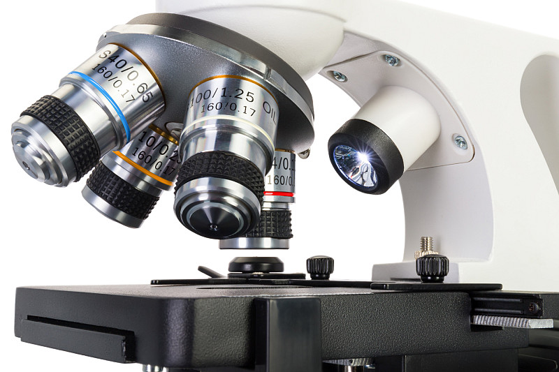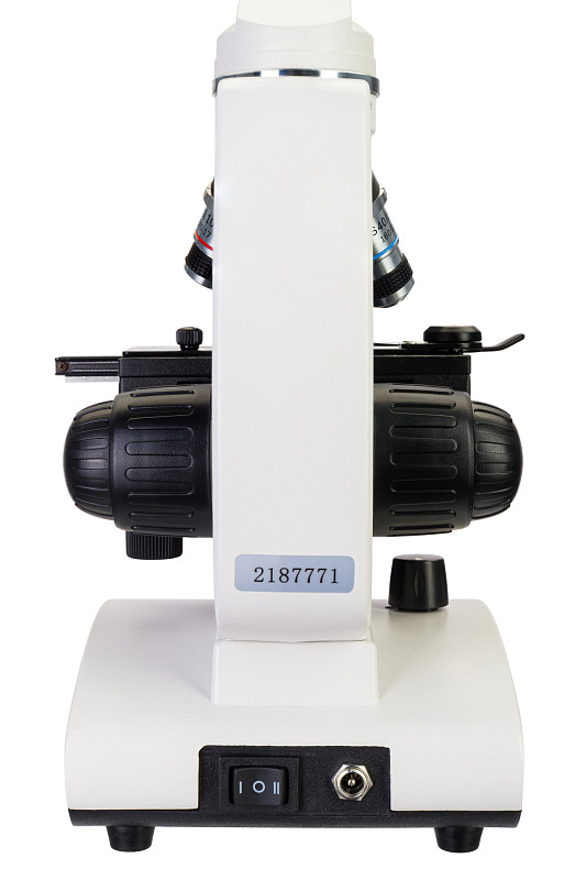 La testata monoculare può essere ruotata di 360° attorno all’asso verticale. L’inclinazione di 45° della testata garantisce un maggiore confort durante le osservazioni prolungate. Il sistema ottico comprende un oculare a campo largo da 10x con puntatore del centro di campo e quattro obiettivi acromatici con ingrandimento 4x, 10x, 40x e 100x. Le lenti obiettivo da 40x e 100x sono dotati di meccanismo a molla per ulteriore protezione. Lo strumento è dotato di messa a fuoco macro e micrometrica.
