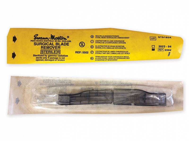 RIMUOVI LAMA - sterile - conf. da 50 pz.Consente una rimozione facile e sicura di lame bisturi di tutte le dimensioni da entrambi i manici n. 3 e n. 4, riducendo le lesioni accidentali da taglio.