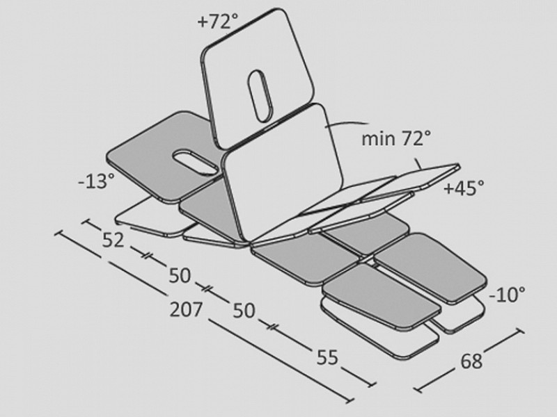 Lettini per visite e terapia a due motori, con regolazione elettrica dell’altezza mediante rail o pedale a bassa tensione (24 V). Hanno sei o otto sezioni: la sezione del tronco può essere regolata elettricamente senza sforzo dall’operatore, usando la tastiera dietro la testa del lettino, mentre il paziente è sottoposto alla terapia; le altre sezioni possono essere regolate con uno o più sistemi di molle a gas. La sezione della testa è dotata di un foro ovale per la respirazione, per un maggiore confort. Lettini ideali per terapie con tecniche di rilascio miofasciale e analisi posturale. Ampia gamma di posizioni possibili in flessione/estensione, simmetriche o asimmetriche. Alimentazione 230 V - 50/60 Hz. Forniti con copertura per foro naso-bocca e manuale di esercizi di educazione posturale.