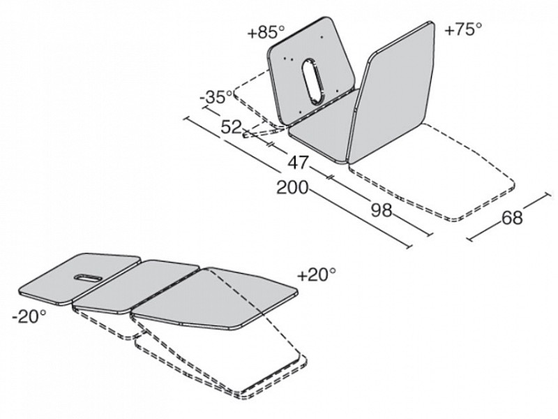 Caratteristiche: tre sezioni mobili regolabili con molla a gas. Il lettino può rapidamente essere posto in posizione “flessa”, “relax” e “trendelenburg” anche con il paziente sdraiato.