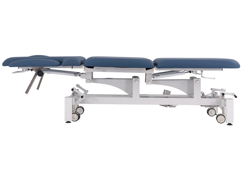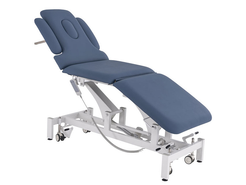 Il lettino è dotato di regolazione elettrica dell’altezza, che consente all’operatore di adattare rapidamente la posizione del paziente in base alle necessità cliniche, migliorando l’ergonomia e riducendo lo sforzo fisico durante le visite o le manovre mediche. Il controllo è semplice e diretto, garantendo rapidità e sicurezza nell’utilizzo quotidiano.