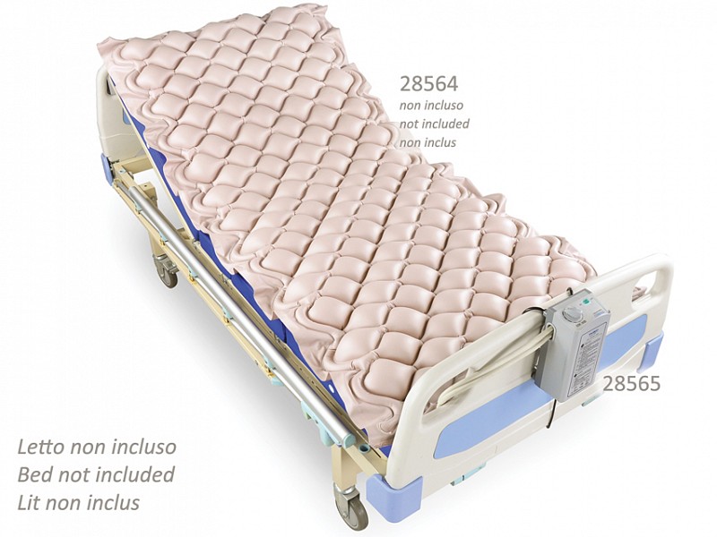 Speciale compressore silenzioso per una perfetta regolazione della pressione grazie alla manovella sul pannello frontale.Il compressore può essere agganciato a qualsiasi tipo di letto da ospedale mediante due ganci.