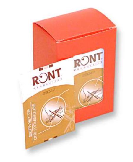 Salviette impregnate di repellente anti zanzara, confezionate in scatolette da10 bustine.