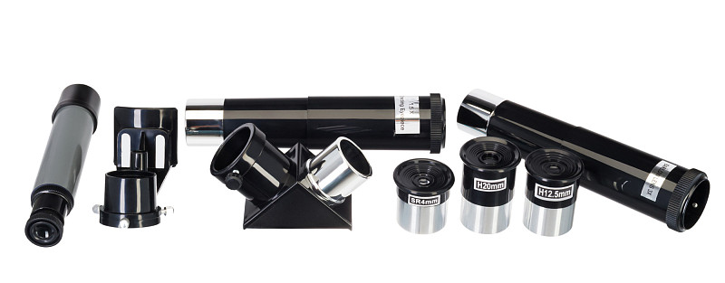 È dotato di lenti in vetro con trattamento antiriflesso. Le ottiche trasmettono un’immagine chiare a nitida, senza distorsioni ottiche. Il kit comprende tre oculari per l’esplorazione dello spazio e un oculare raddrizzatore per le osservazioni terrestri, oltre a una lente di Barlow e un diagonale a specchio per variare l’ingrandimento durante le osservazioni. Tuttavia, se il set fornito non dovesse bastare, è sempre possibile acquistare ulteriori accessori. Il telescopio è dotato di un focheggiatore standard da 31,75 millimetri (1,25 pollici), il che lo rende compatibile con la maggior parte degli accessori disponibili sul mercato.