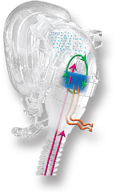 Questo umidificatore permette di riutilizzare l'umidità del tuo respiro, senza bisogno di serbatoi d'acqua.