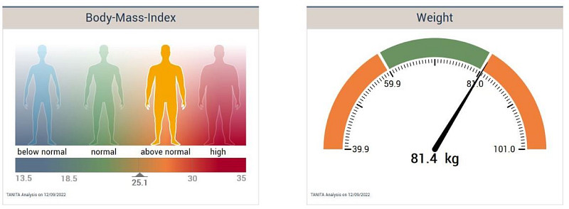 Il software permette la visualizzazione completa di tutti i risultati misurati e calcolati dai monitor TANITA, con grafici dettagliati sia per singole misurazioni che per l’analisi della progressione nel tempo. È possibile generare report personalizzati con logo aziendale e selezione dei grafici da includere, stampabili o inviabili via email. Grazie al generatore di codici QR, i report possono essere scaricati facilmente anche senza invio diretto.