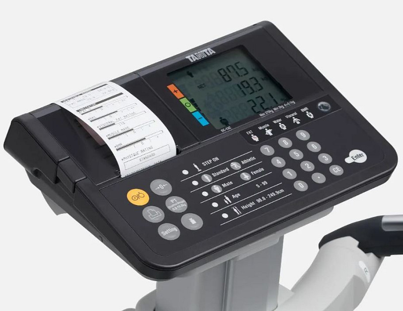 Grazie alla tecnologia BIA (analisi dell’impedenza bioelettrica) integrata negli elettrodi delle maniglie, TANITA DC-13C consente una misurazione rapida e non invasiva. L’ampio display LCD e il pannello intuitivo permettono un’interazione semplice e autonoma da parte dell’utente. Al termine della misurazione, viene stampata una ricevuta chiara e dettagliata con tutti i parametri rilevati, utile per una valutazione immediata o per una successiva consulenza professionale.