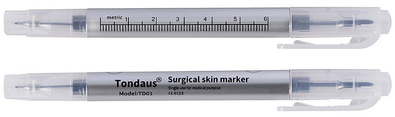 Penna dermatologica a doppia punta ideale per la chirurgia plastica.