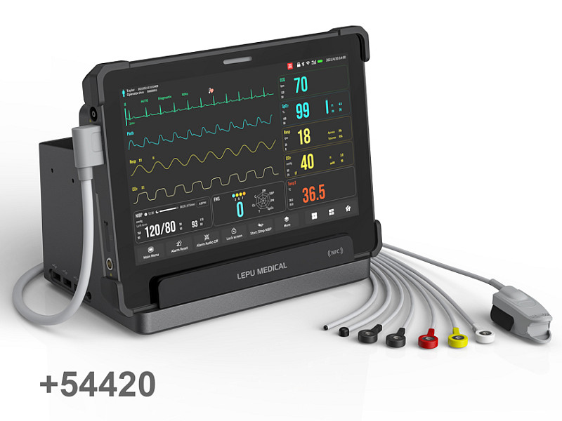- Struttura unica con accessori: un cavo di collegamento per 4/5 derivazioni ECG, sensore SpO2 e sensore TEMP.
