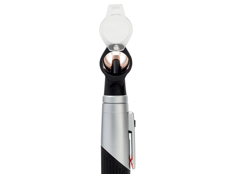 Moderno oftalmoscopio tascabile combinato con un otoscopio compatto e molto brillante. Pratico e con illuminazione LEDHQ.