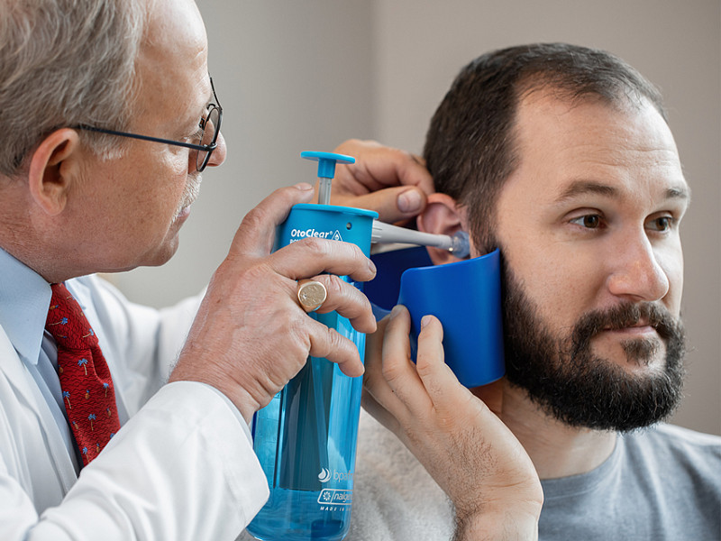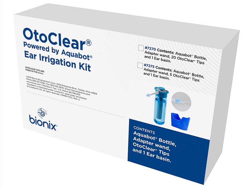 Il kit include: 1 flacone per lavaggio spray, 5 punte Otoclear, 1 bacinella per orecchio