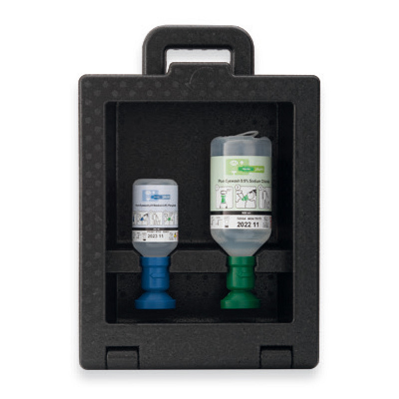Vetrinetta con 1 flacone di PH neutro da ml 200 e 1 soluzione di lavaggio oculare da ml 500.