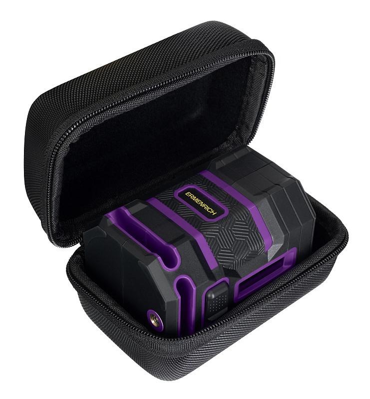 La livella laser Ermenrich PLUS LN15 crea cinque linee in due piani. La copertura orizzontale è di 360°, il che produce quattro linee, e una linea viene creata nel piano verticale. Questo tipo di proiezione del raggio è comodo sia per l’uso domestico sia per lavori di costruzione professionali. Una livella con cinque raggi è utile per contrassegnare prese e interruttori, installare aperture per porte e finestre, posare pavimenti, incollare carta da parati e decorazioni per stanze.