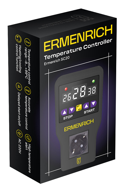 Il regolatore di temperatura basato su microprocessore Ermenrich SC20 ti consente di controllare la temperatura di qualsiasi locale, domestico, industriale, agricolo, così come uffici e serre. È possibile collegarlo ad apparecchiature di riscaldamento, condizionatori d’aria, sistemi di riscaldamento d’acqua, etc. Il sensore del regolatore legge la temperatura ambientale. Quando la temperatura raggiunge il livello desiderato, il dispositivo ad esso connesso viene acceso o spento, mantenendo la temperatura desiderata.