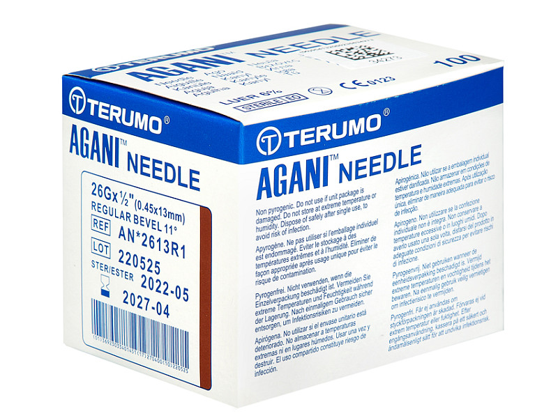 Aghi ipodermici terumo agani 26gx1 1/2" - 0,45x13mm - an*2613r1 marrone - sterili - conf. 100 pz.