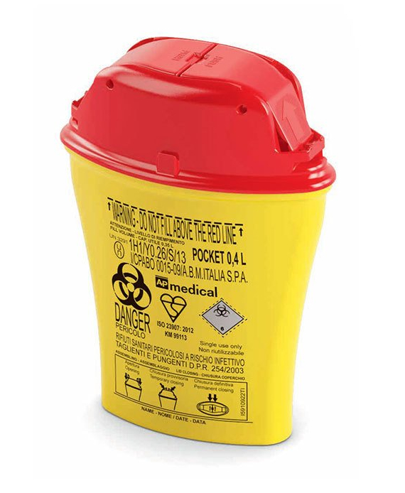 Il contenitore per rifiuti taglienti da 0,4 litri è progettato per lo smaltimento sicuro di rifiuti appuntiti e taglienti. La sua struttura monouso garantisce una chiusura definitiva e inviolabile, prevenendo la fuoriuscita di rifiuti. Realizzato con materiali di alta resistenza, assicura qualità e sicurezza ottimali. Il sistema brevettato di doppia apertura consente un utilizzo agevole con una sola mano. Un lato è dedicato allo smaltimento di aghi e penne da insulina, mentre l'altro offre un'apertura più ampia per siringhe intere.