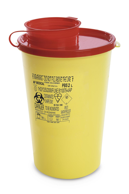 Contenitore PBS 2 lt per smaltimento aghi e rifiuti acuminati con coperchio - conf. 75 pz.
