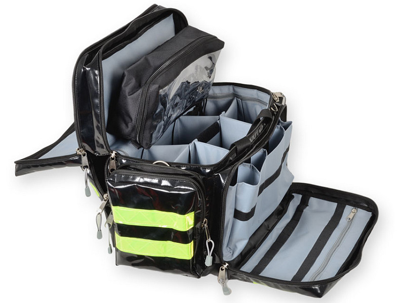 Borsa emergenza professionale molto capiente grazie alla modularità interna che consente un’organizzazione personalizzata degli spazi.