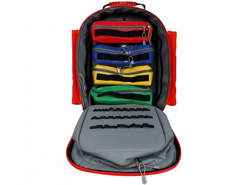 ZAINO EMERGENZA LOGIC 2 PVC CON TROLLEY - 49 x 31 x 57 cmFornito con 6 borsette colorate con finestra trasparente e strisce velcro, 2 tasche frontali e 2 tasche laterali.