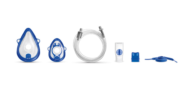 - Dotato di - Nuovo Nebulizzatore brevettato RF6 con valvole e sistema antirovesciamento accidentale del farmaco – Comando manuale di nebulizzazione – Boccaglio – Nasale - Mascherina adulto - Mascherina pediatrica - Tubo di collegamento da 2 m