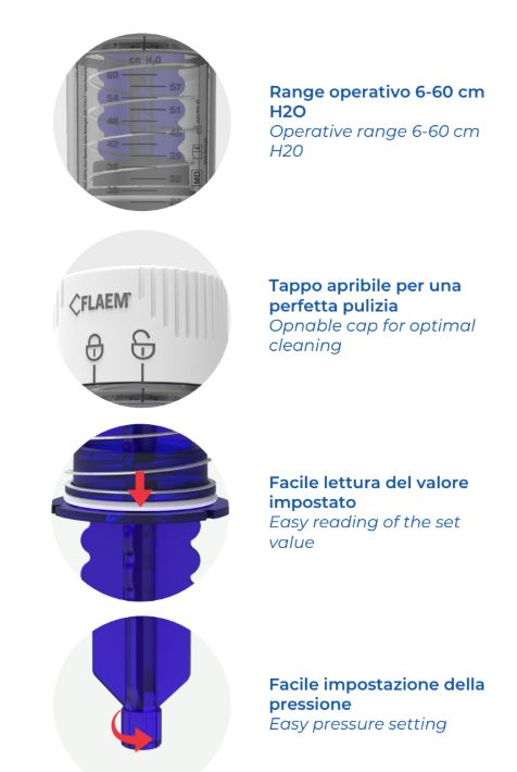 Viene fornito a completamento della dotazione un pratico tappanaso, utile per massimizzare gli esercizi respiratori.