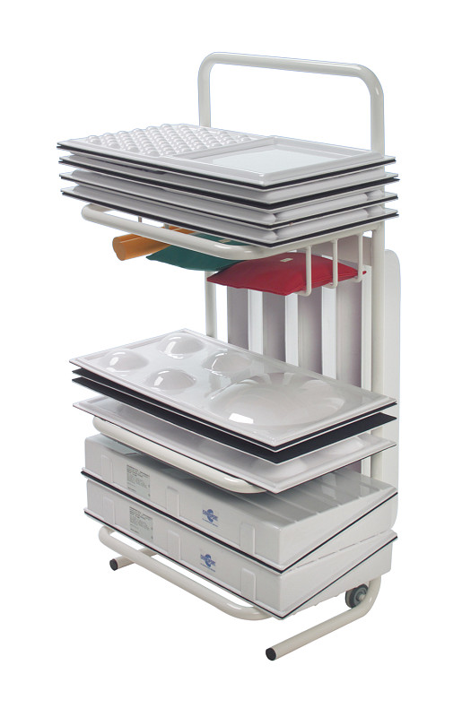 Il carrello per set percorsi terapici è realizzato in acciaio verniciato ed è progettato per ospitare diversi tipi di moduli (non inclusi). Questo carrello è dotato di spazi specifici per alloggiare un numero di moduli in termoplastica corrispondente al set identificato con il codice 01379.