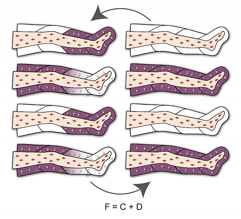 Massaggio vigoroso: l’alternanza del programma “medio C” ed il programma “forte D” creano una combinazione di onde di pressione massaggianti molto intense per un’applicazione urto. Dal principio del trattamento si susseguiranno circolarmente i due programmi C+D+C+D …e così via, intervallati sempre da una breve pausa di sgonfiamento degli applicatori.